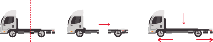 O encurtamento de chassi e entre-eixo é realizado para reduzir o comprimento do veículo, tornando-o mais ágil e adequado para certos tipos de transporte. Este ajuste mantém a distribuição correta do peso entre os eixos, garantindo a estabilidade e o desempenho do caminhão.